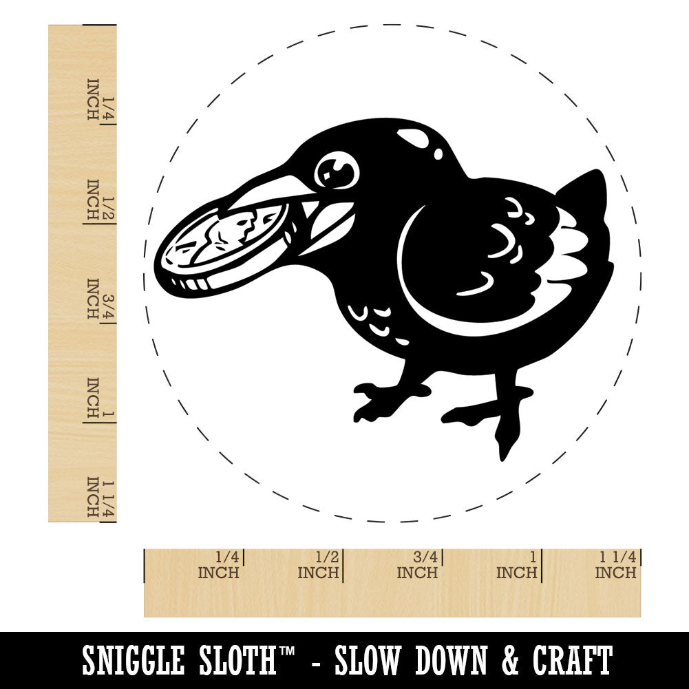 Happy Excited Crow With Treasure Coin Rubber Stamp for Stamping Crafting Planners