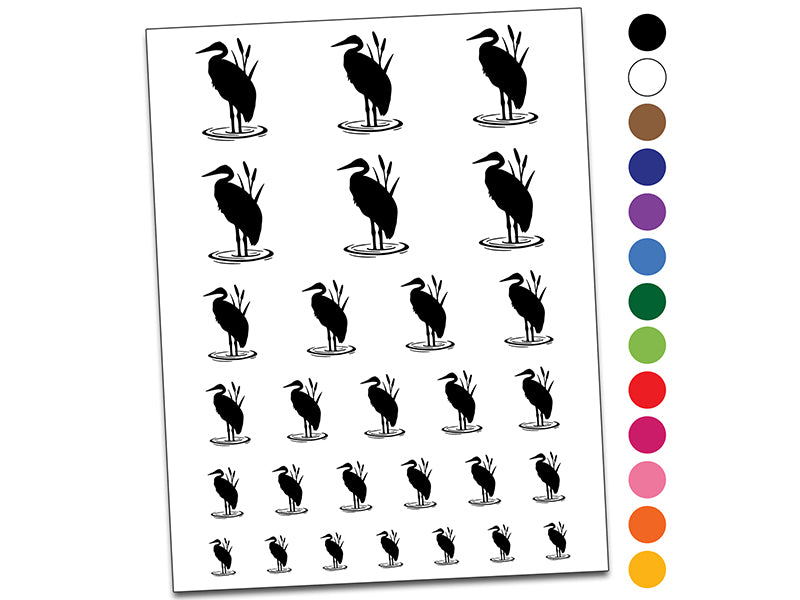 Heron Bird Silhouette Temporary Tattoo Water Resistant Fake Body Art Set Collection