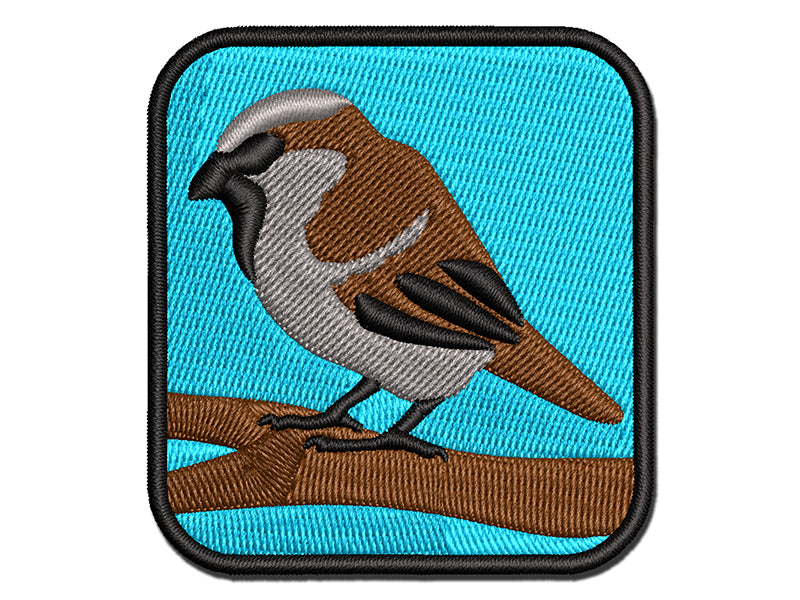 House Sparrow Little Bird Standing Multi-Color Embroidered Iron-On or Hook & Loop Patch Applique