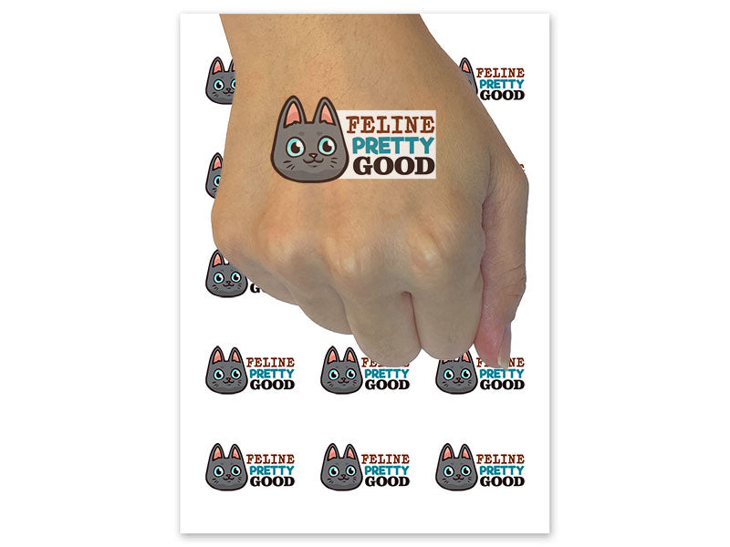 Feline Pretty Good Smiling Cat Temporary Tattoo Water Resistant Fake Body Art Set Collection (1 Sheet)