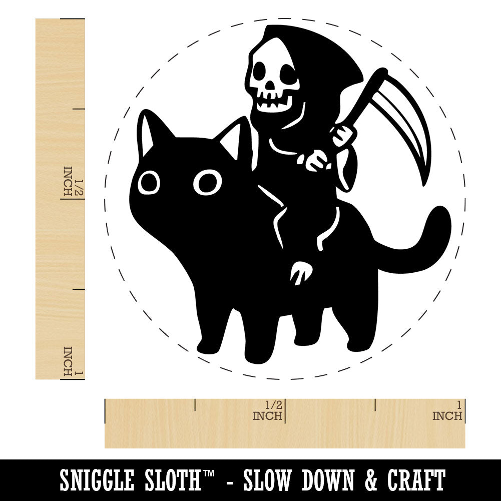 Gleeful Grim Reaper Death Riding On Black Cat Self-Inking Rubber Stamp for Stamping Crafting Planners