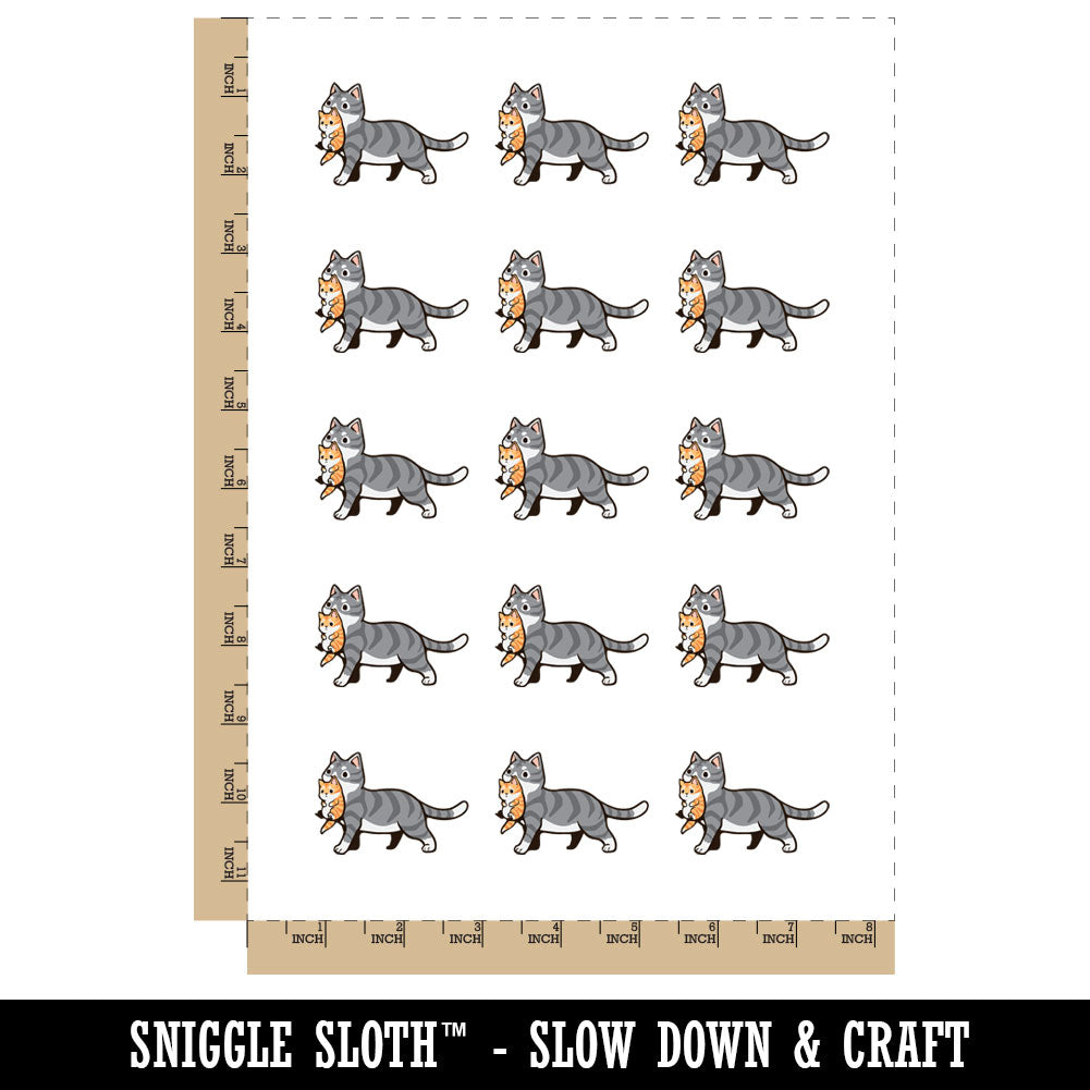 Mother Tabby Cat Carrying Kitten Temporary Tattoo Water Resistant Fake Body Art Set Collection (1 Sheet)