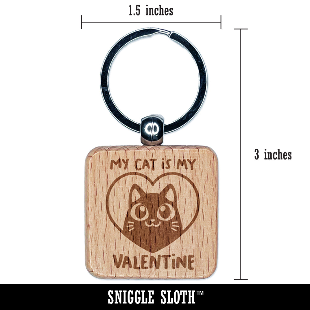 My Cat is My Valentine Engraved Wood Square Keychain Tag Charm
