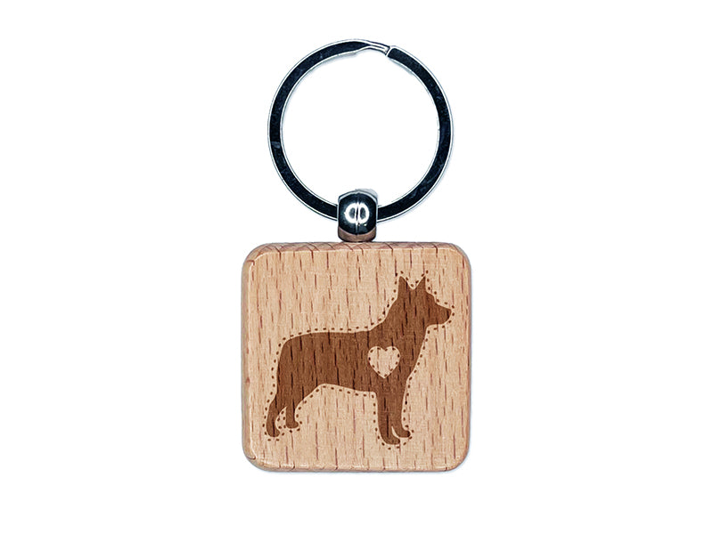 Australian Cattle Dog with Heart Engraved Wood Square Keychain Tag Charm