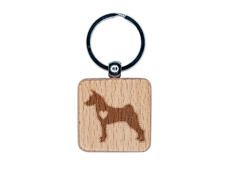 Basenji Dog with Heart Engraved Wood Square Keychain Tag Charm