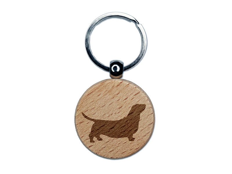 Basset Hound Dog Solid Engraved Wood Round Keychain Tag Charm