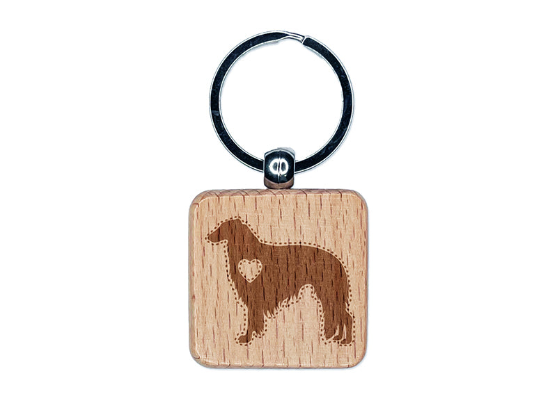 Borzoi Russian Wolfhound Dog with Heart Engraved Wood Square Keychain Tag Charm