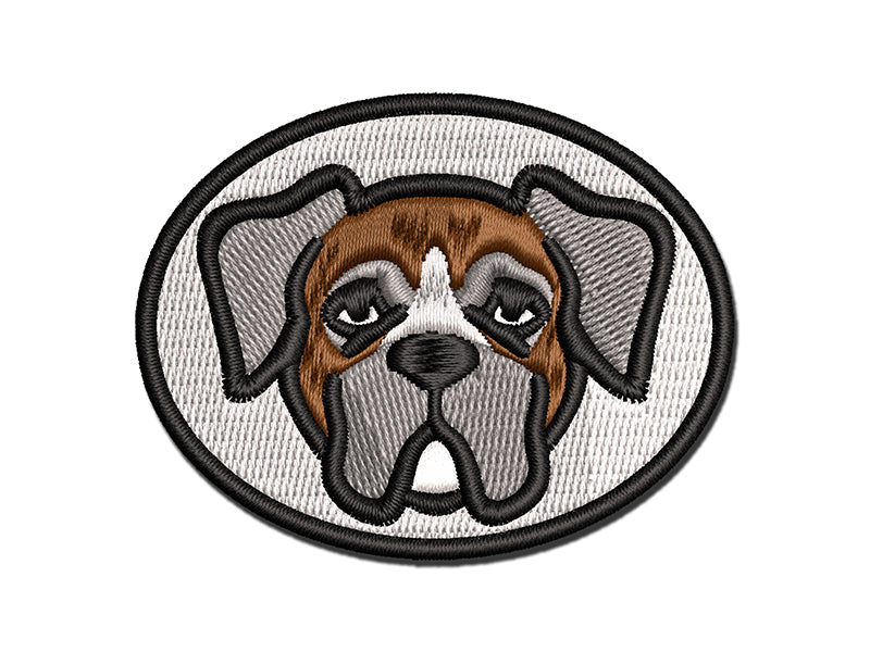 Boxer Dog Head Multi-Color Embroidered Iron-On or Hook & Loop Patch Applique
