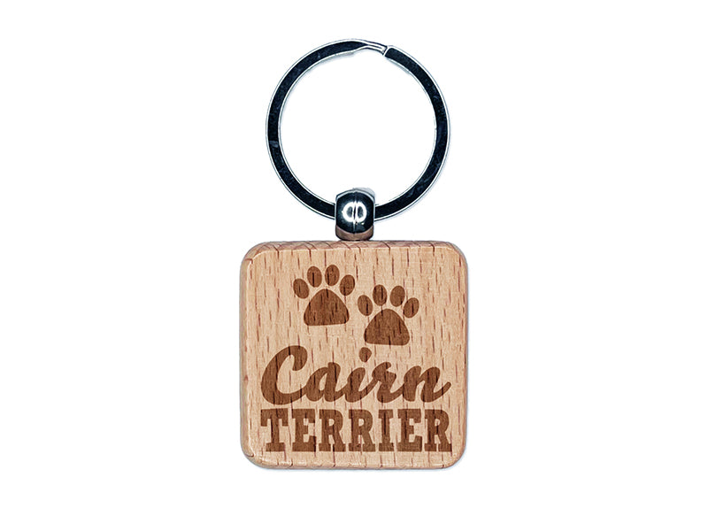 Cairn Terrier Dog Paw Prints Fun Text Engraved Wood Square Keychain Tag Charm