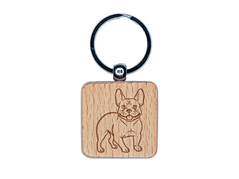 Charming Frenchie French Bulldog Pet Dog Engraved Wood Square Keychain Tag Charm