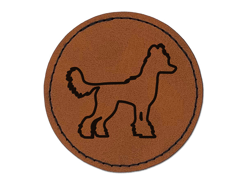 Chinese Crested Dog Outline Round Iron-On Engraved Faux Leather Patch Applique - 2.5"