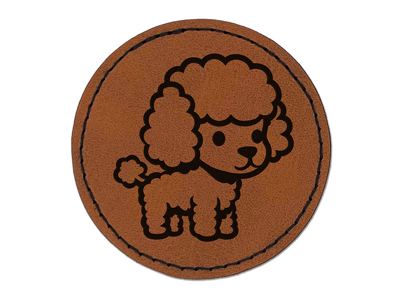 Cute and Fluffy Poodle Dog Round Iron-On Engraved Faux Leather Patch Applique - 2.5"