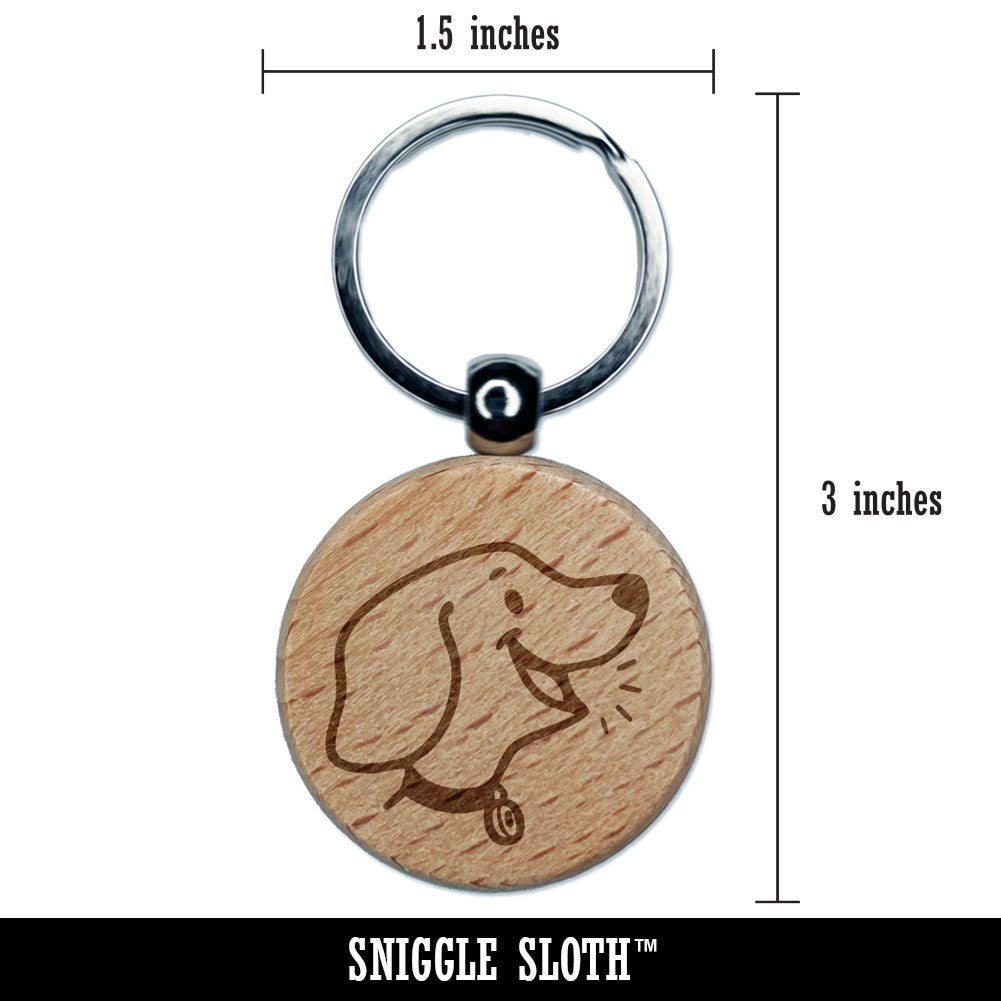Cute Barking Dog Puppy Side Profile Engraved Wood Round Keychain Tag Charm