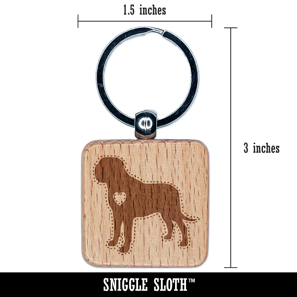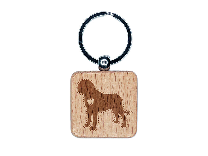 English Mastiff Dog with Heart Engraved Wood Square Keychain Tag Charm