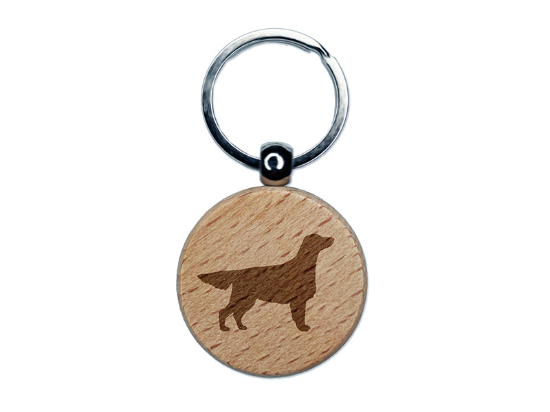 Flat-Coated Retriever Dog Solid Engraved Wood Round Keychain Tag Charm