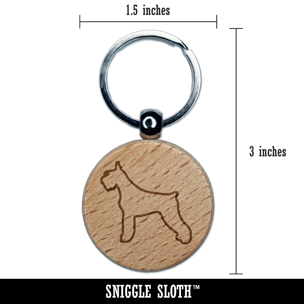 Giant Schnauzer Dog Outline Engraved Wood Round Keychain Tag Charm