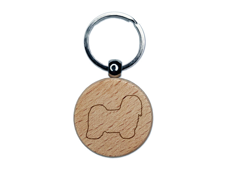 Havanese Dog Outline Engraved Wood Round Keychain Tag Charm