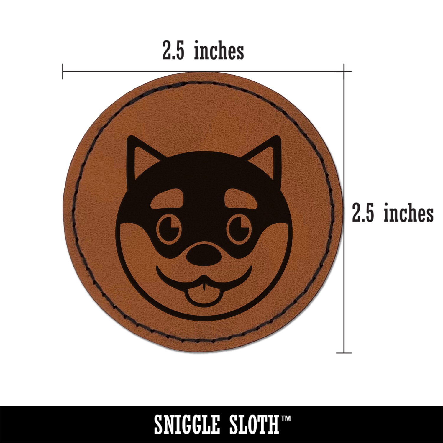 Husky Dog Face Happy Round Iron-On Engraved Faux Leather Patch Applique - 2.5"