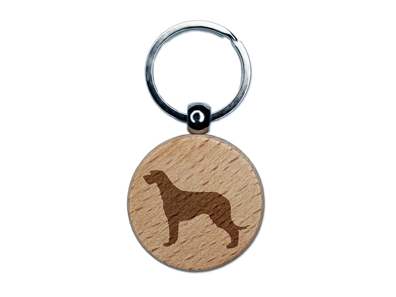 Irish Wolfhound Dog Solid Engraved Wood Round Keychain Tag Charm