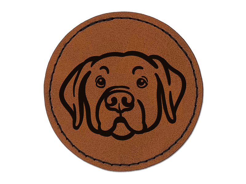 Labrador Retriever Dog Head Round Iron-On Engraved Faux Leather Patch Applique - 2.5"