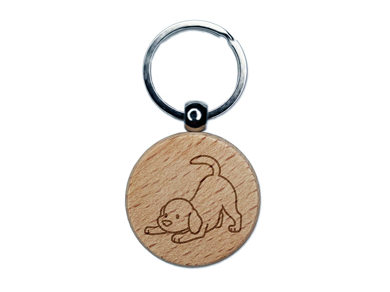 Labrador Retriever Play Bow Dog Engraved Wood Round Keychain Tag Charm