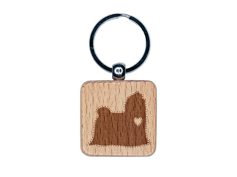Maltese Dog with Heart Engraved Wood Square Keychain Tag Charm