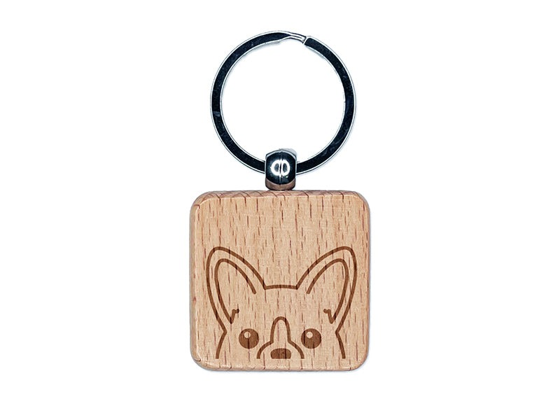 Peeking Corgi Dog Engraved Wood Square Keychain Tag Charm