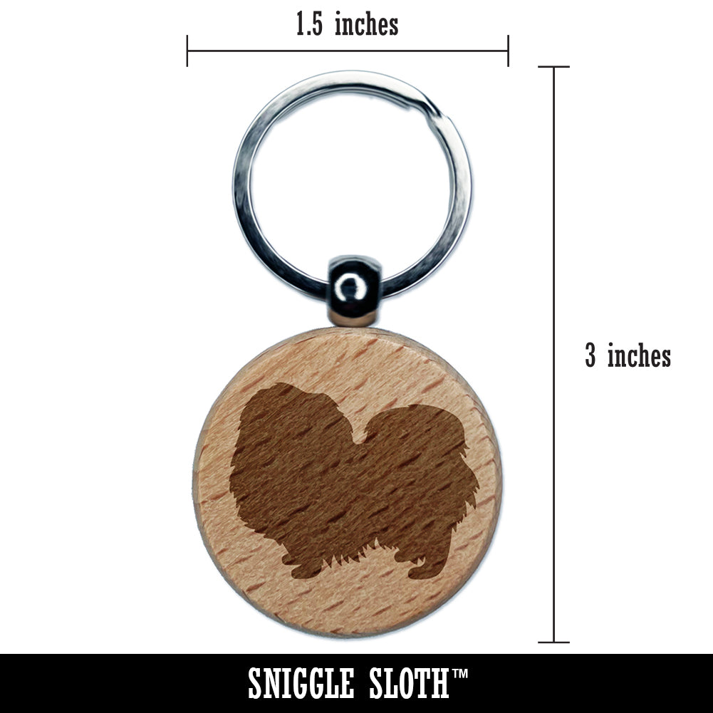 Pekingese Dog Solid Engraved Wood Round Keychain Tag Charm