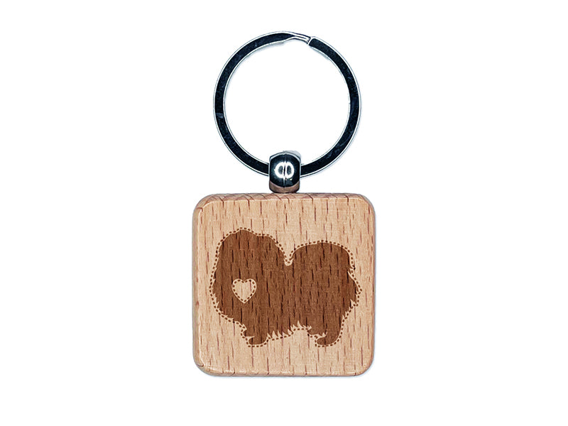 Pekingese Dog with Heart Engraved Wood Square Keychain Tag Charm