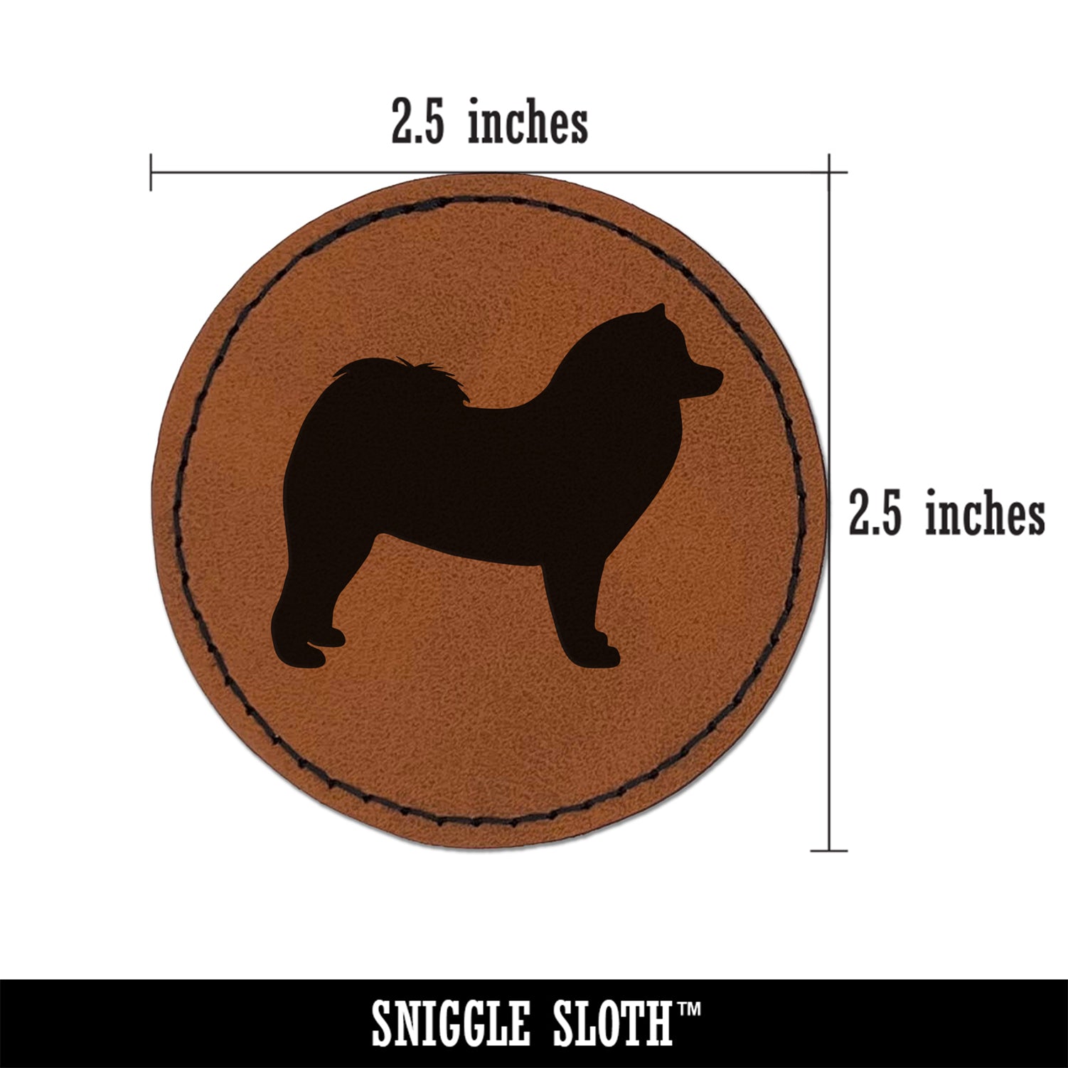 Samoyed Dog Solid Round Iron-On Engraved Faux Leather Patch Applique - 2.5"
