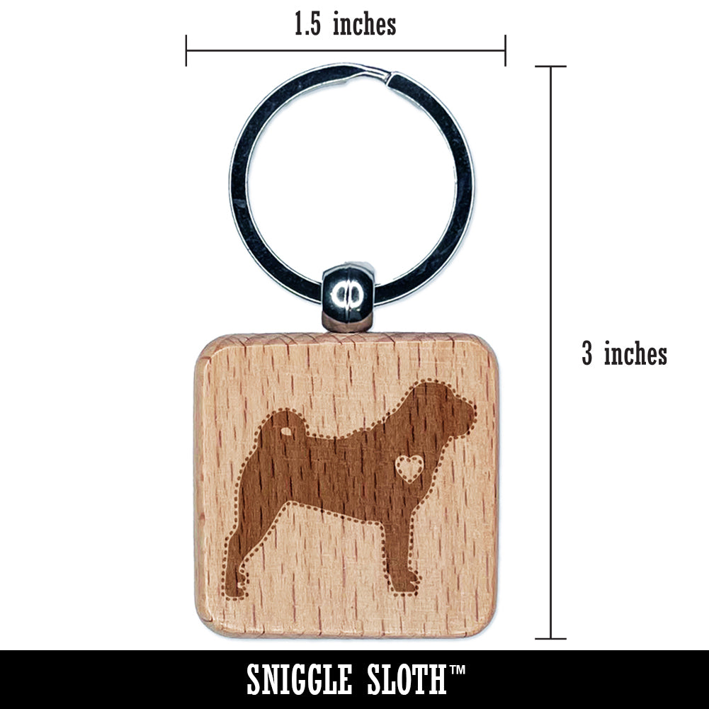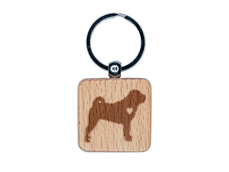 Shar-Pei Dog with Heart Engraved Wood Square Keychain Tag Charm