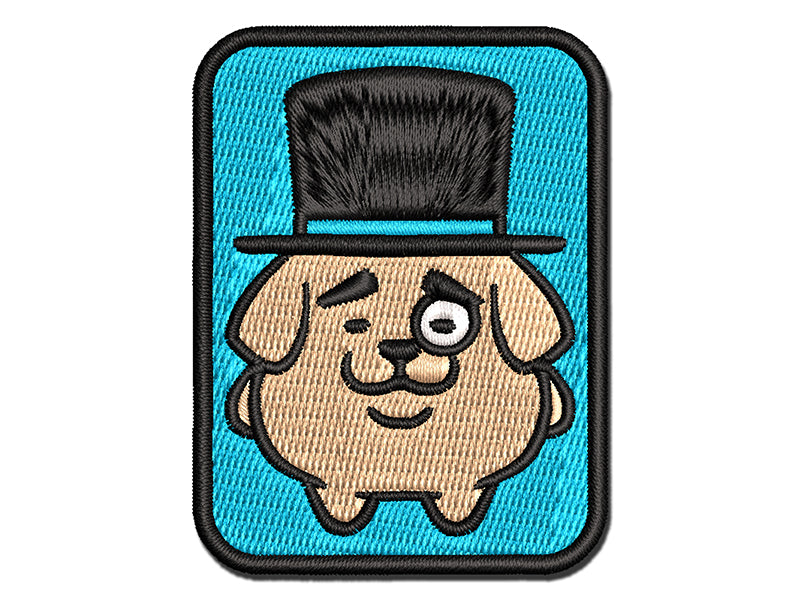 Weird Fancy Gentleman Dog Pup Top Hat Monocle Multi-Color Embroidered Iron-On or Hook & Loop Patch Applique