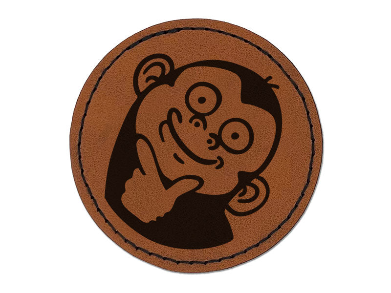 Thinking Staring Monkey Judging Eyes Stare Round Iron-On Engraved Faux Leather Patch Applique - 2.5 Inch