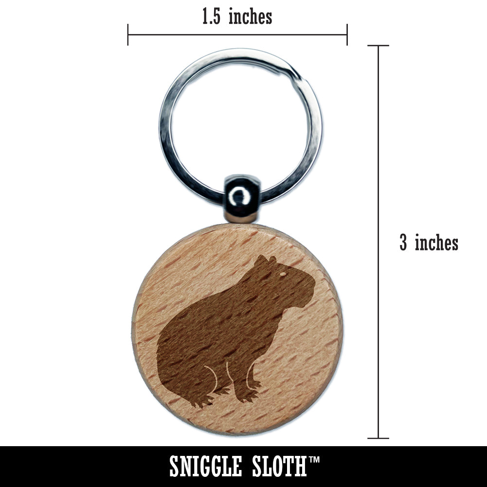 Capybara Rodent Silhouette Engraved Wood Round Keychain Tag Charm