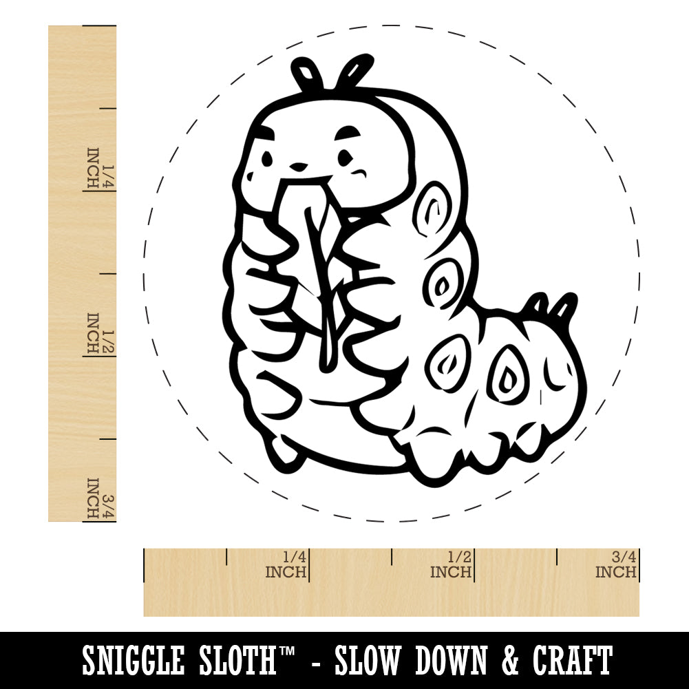 Chubby Caterpillar Eating Leaf Rubber Stamp for Stamping Crafting Planners
