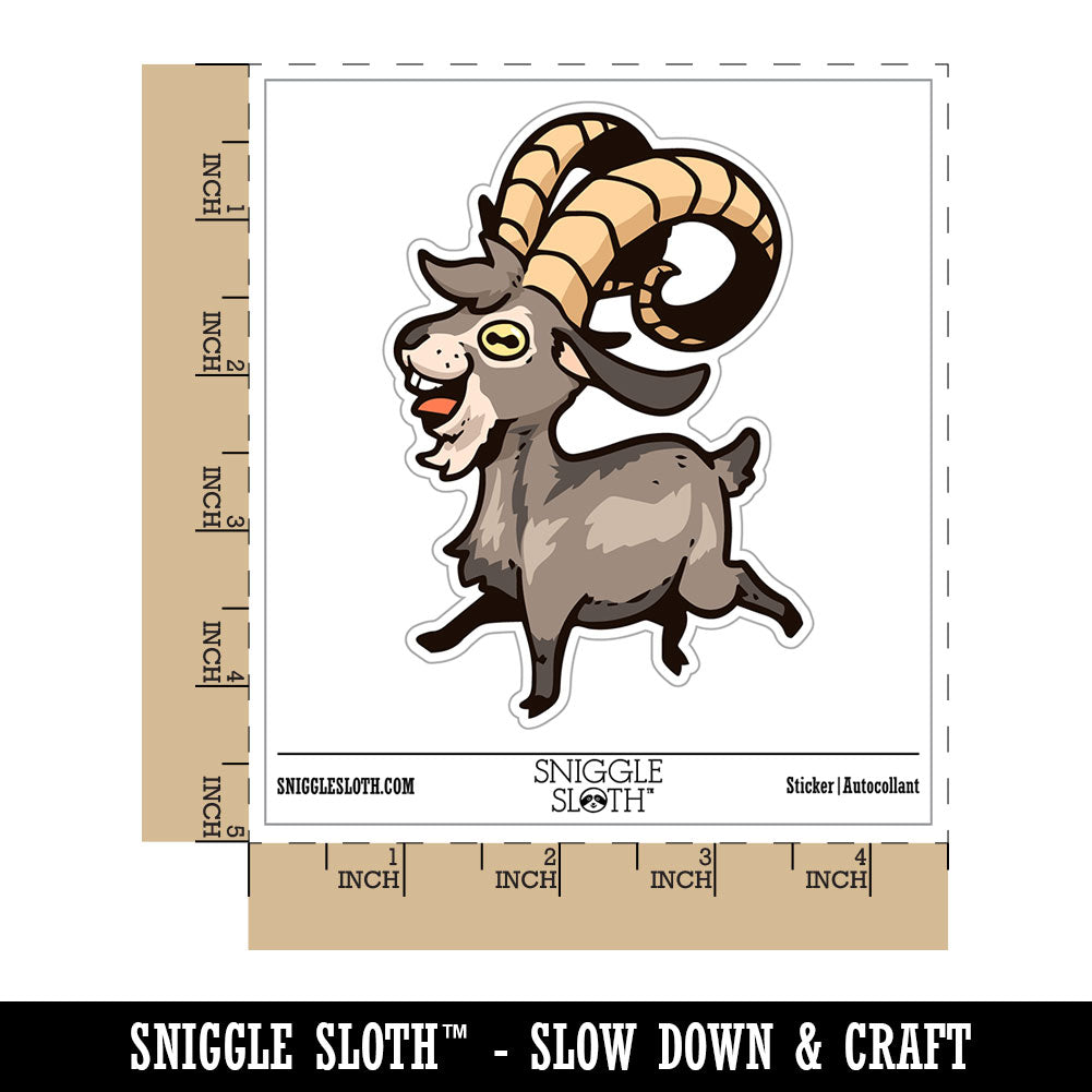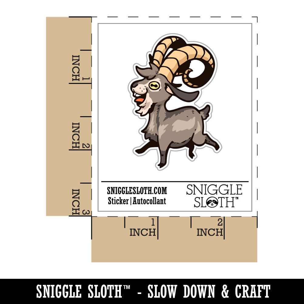 Water Bottle Sticker Set Silly Happy Goat with Big Horns Cute Waterproof Vinyl Stickers Pack Decal, Skateboard, Laptop, Car, Window, Bumper - 5 Pack