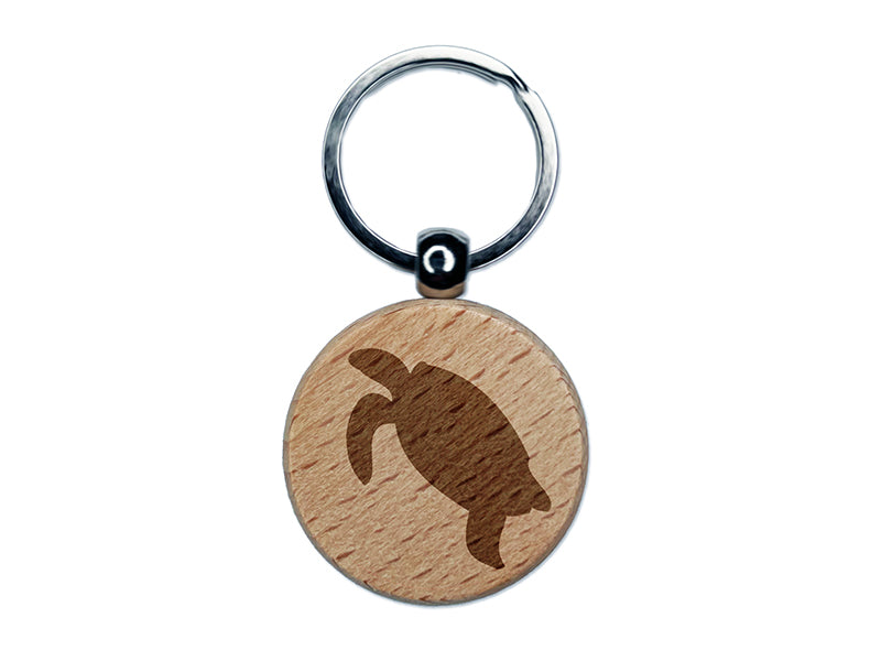 Turtle Swimming Solid Engraved Wood Round Keychain Tag Charm