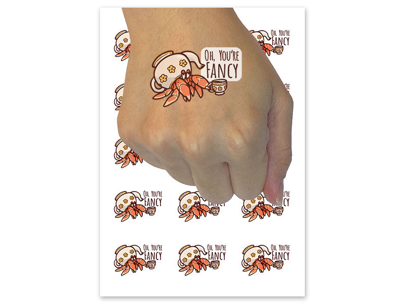 Oh You're Fancy Hermit Crab Teapot Teacup Temporary Tattoo Water Resistant Fake Body Art Set Collection (1 Sheet)