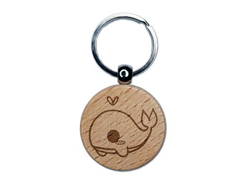 Sweet Kawaii Chibi Whale Engraved Wood Round Keychain Tag Charm