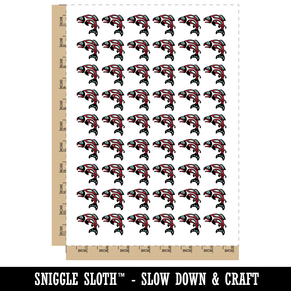 Tribal Native American Salmon Fish Totem Temporary Tattoo Water Resistant Fake Body Art Set Collection (1 Sheet)