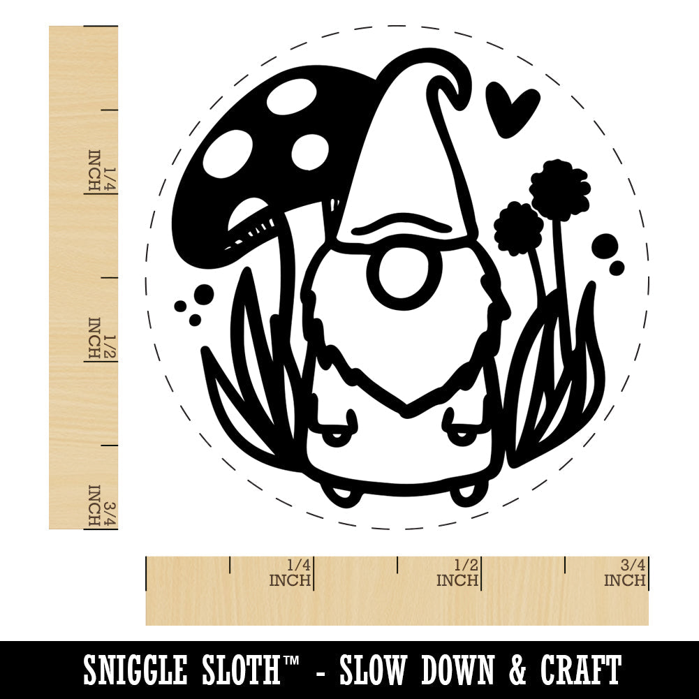 Enchanting Lovable Garden Gnome with Mushrooms Rubber Stamp for Stamping Crafting Planners