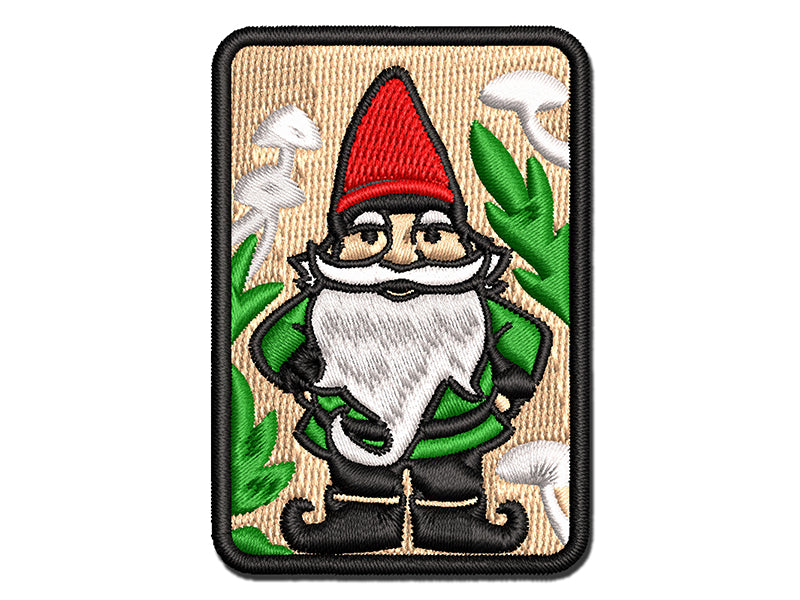 Garden Gnome with Background Multi-Color Embroidered Iron-On or Hook & Loop Patch Applique