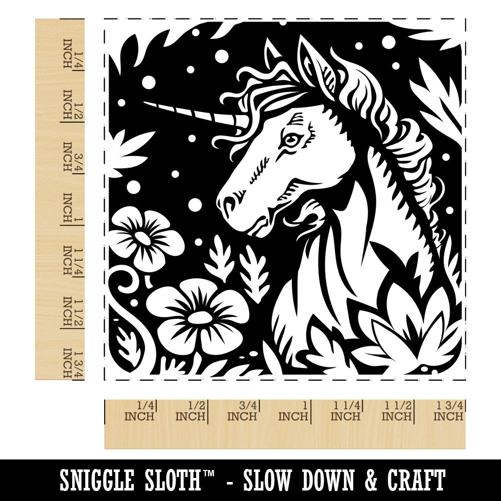 Unicorn in Flower Forest Square Rubber Stamp for Stamping Crafting