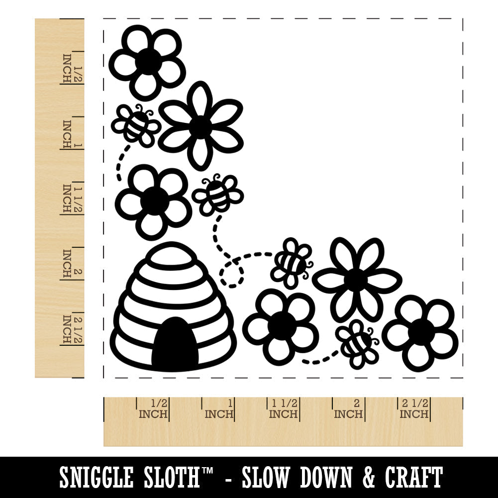 Flowers and Bees Corner Square Rubber Stamp for Stamping Crafting