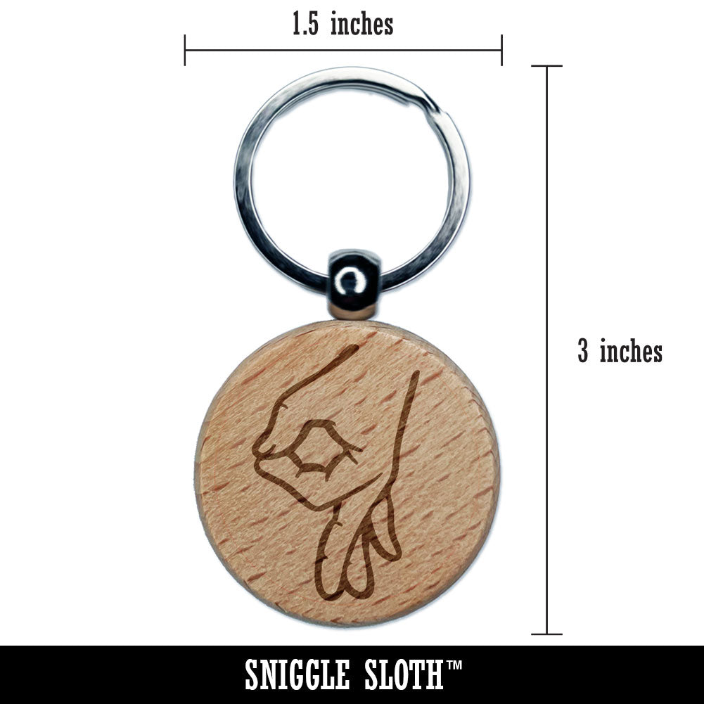 Circle Game Hand Sign Funny Engraved Wood Round Keychain Tag Charm