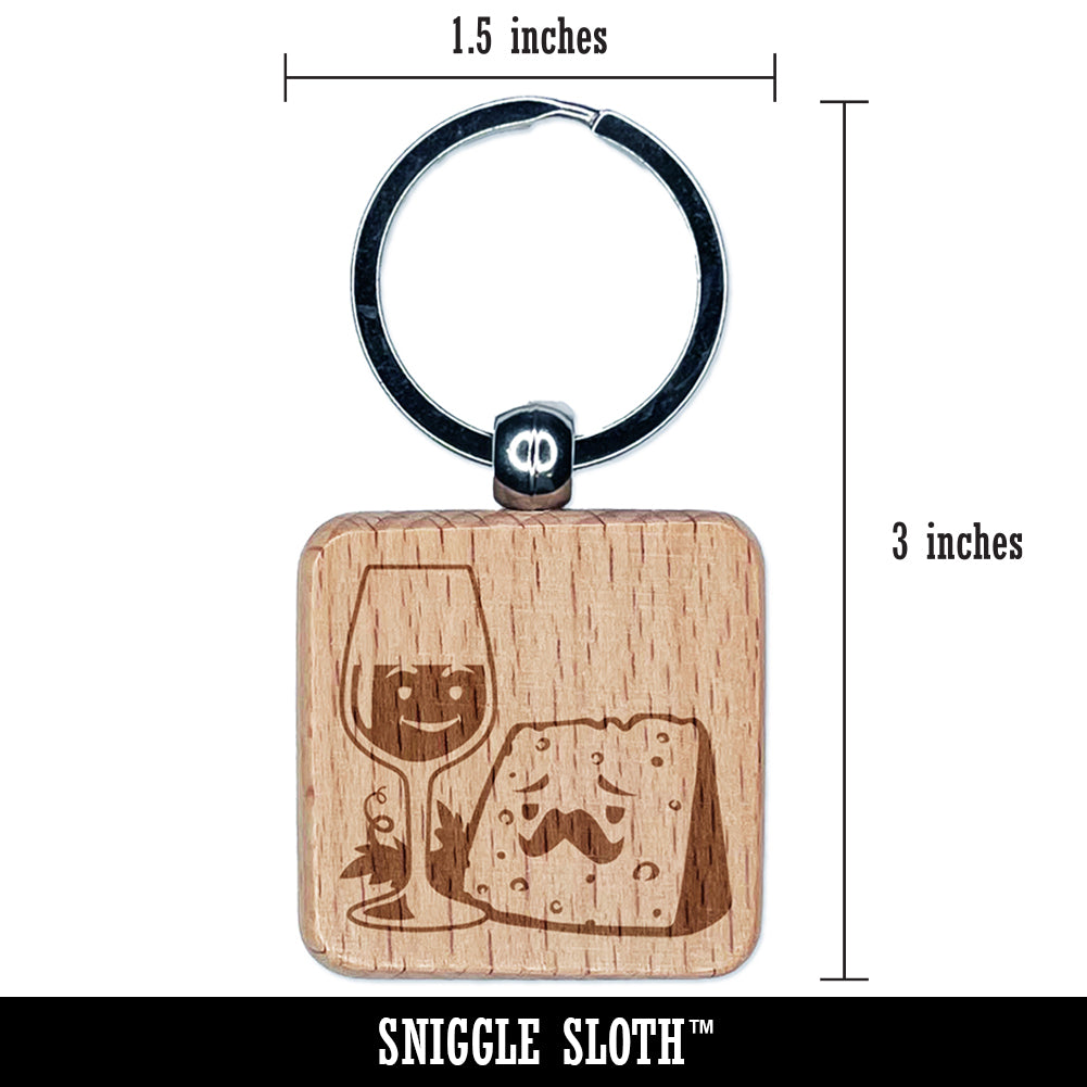Wine Glass and Cheese Perfect Pair Engraved Wood Square Keychain Tag Charm