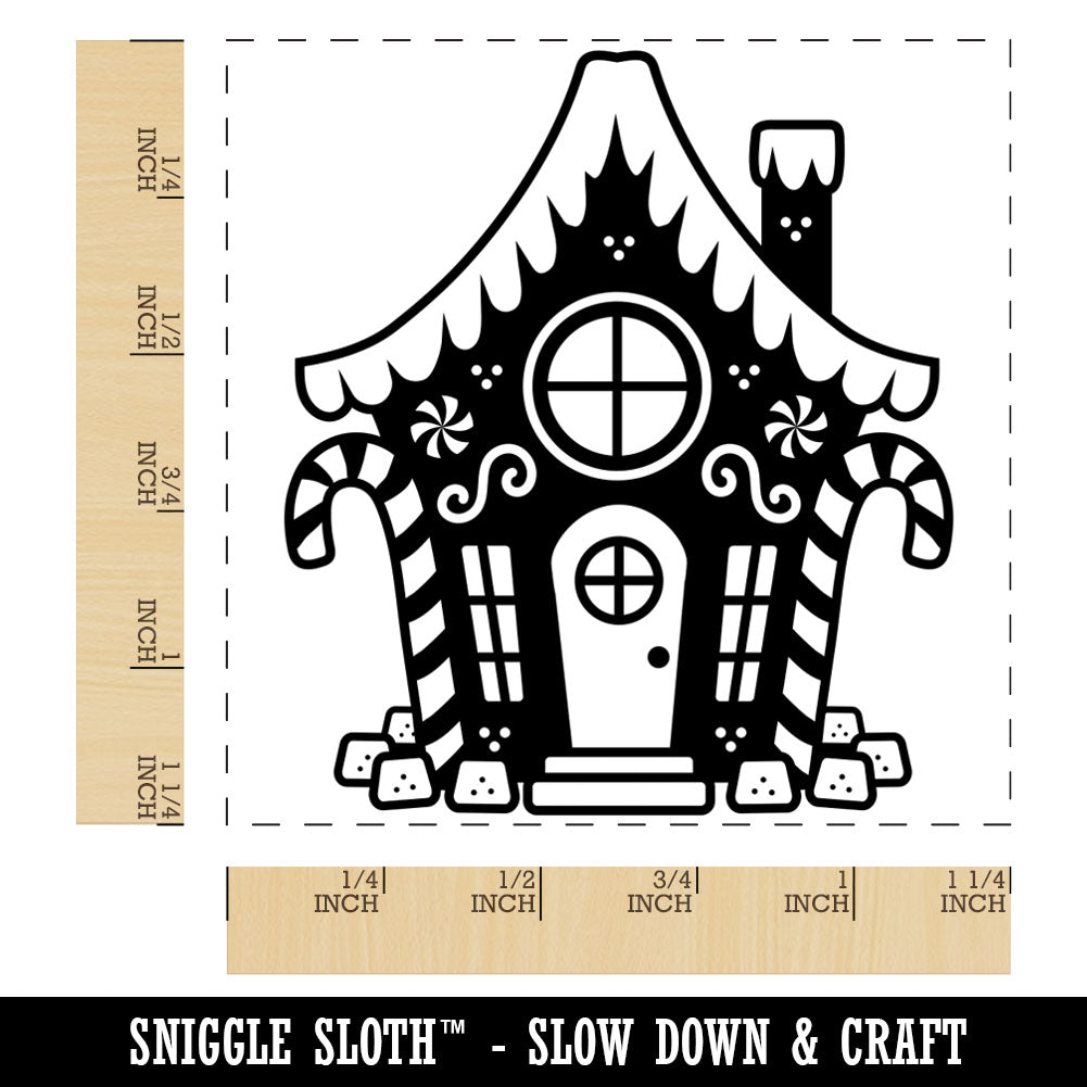 Gingerbread House with Peppermint and Gumdrops Christmas Square Rubber Stamp for Stamping Crafting