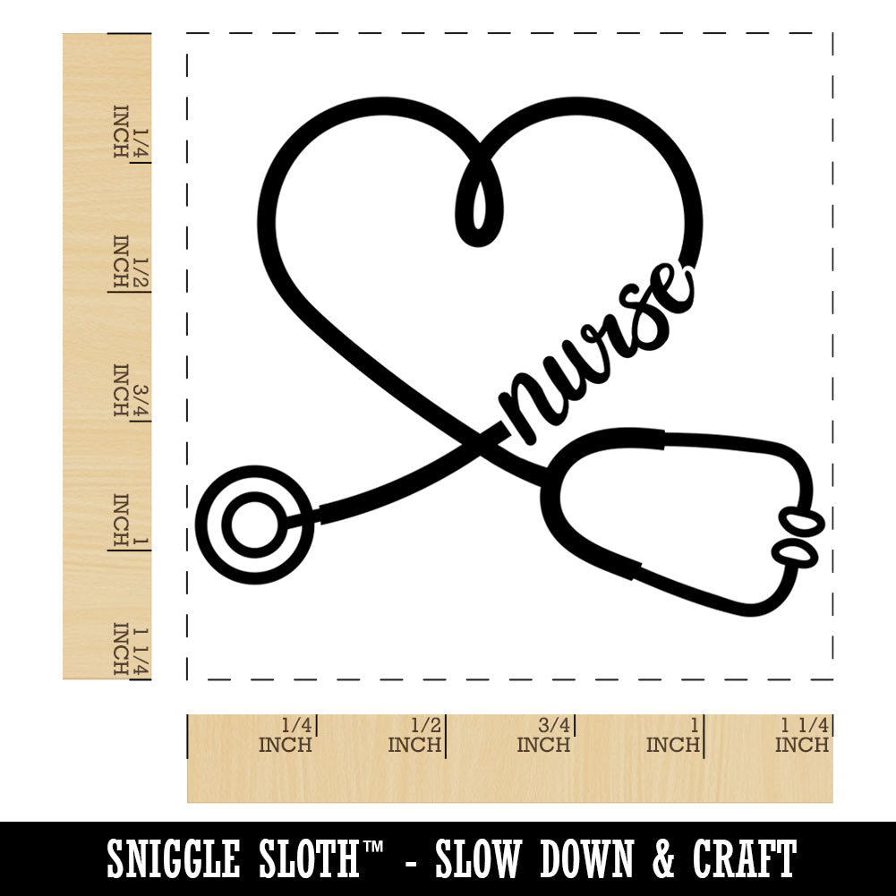 Nurse Heart Stethoscope Square Rubber Stamp for Stamping Crafting