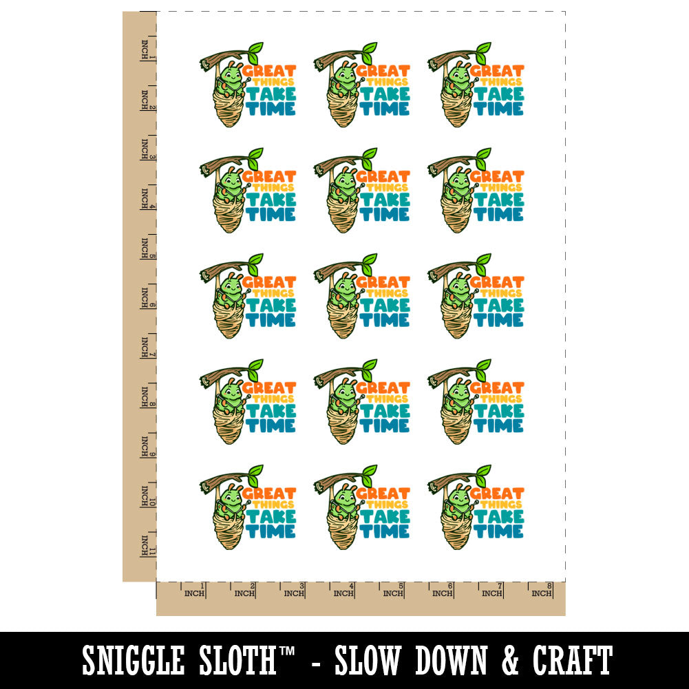 Great Things Take Time Caterpillar Knitting Coccoon Temporary Tattoo Water Resistant Fake Body Art Set Collection