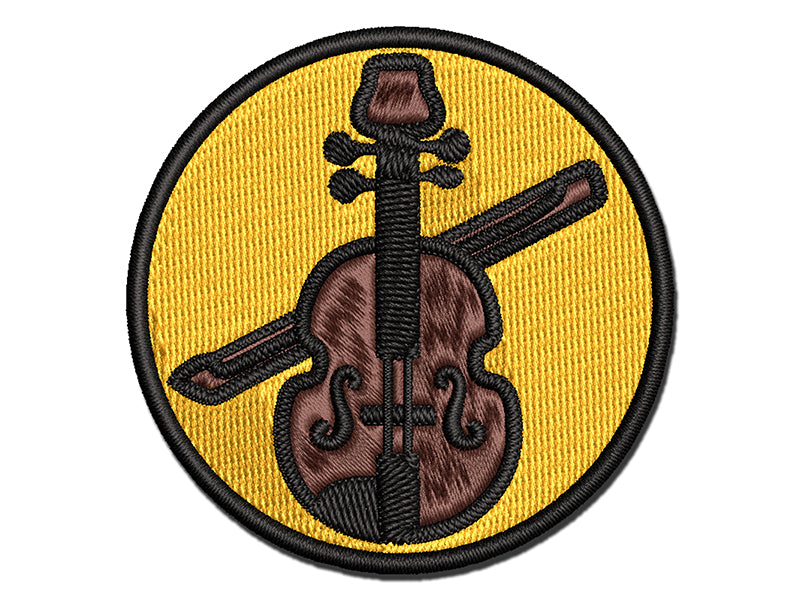 Fun Violin with Bow Icon Multi-Color Embroidered Iron-On or Hook & Loop Patch Applique